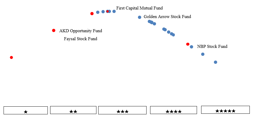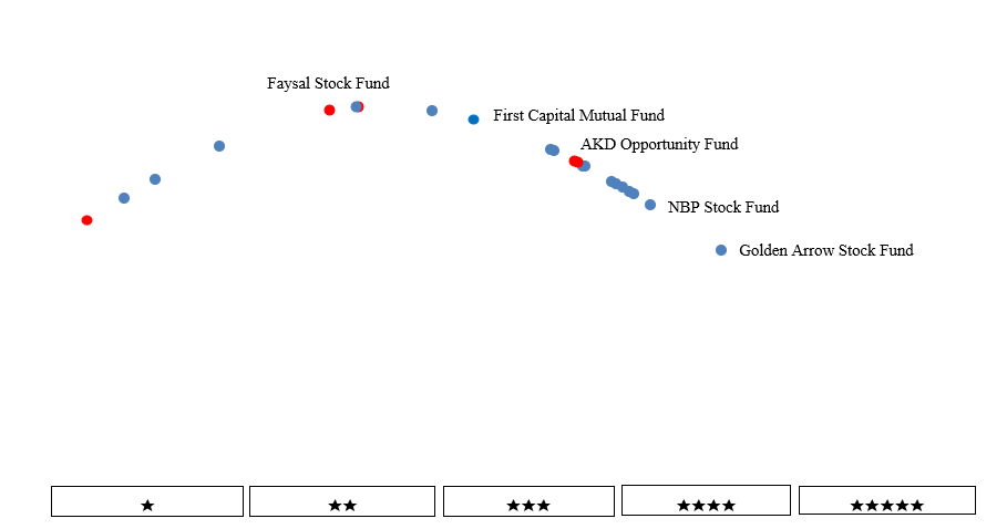 Over the three-year horizon, Pakistan’s capital markets grappled with policy uncertainty, fiscal imbalances, persistent inflationary pressures, and repeated delays in the IMF program. Volatility in interest and exchange rates further added to the market's complexity, impacting investor sentiment and resulting in mixed performance across Equity Funds. PACRA is rating 5 funds out of 23 funds in Equity category, the category delivered a strong cumulative return of ~153.66%, with the top-performing fund achieving an impressive ~279.39%, while Golden Arrow Stock Fund generated a return of ~127.52%, maintaining a 3-Star ranking by PACRA. As of Jun’25, the Fund held ~94.95% in Equities, ~3.23% in Cash, and the remaining ~1.82% in Others including receivables. Sector allocation included ~19.62% Inv. Banks/ Inv. Cos./ Securities Cos., ~9.70% in Power Generation & Distribution, ~8.06% in Technology & Communication, ~7.99% in Textile Spinning, ~6.87% in Oil & Gas Exploration Companies, and the remaining ~42.70% was spread across other sectors.