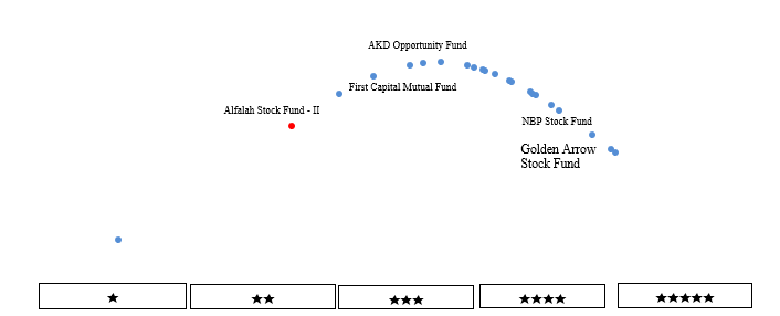Alfalah Stock Fund - II (Formerly: Faysal Stock Fund) was an open-ended equity scheme launched on April 19, 2004. The aim of the Fund was to provide capital growth by investing primarily in a diversified pool of equities and equity related investments. So as to diversify fund risk and to optimize potential returns. In line with the decision of Alfalah Asset Management Limited (AAML), PACRA was requested to withdraw the performance ranking assigned to Alfalah Stock Fund - II (Formerly: Faysal Stock Fund). Consequently, PACRA hereby withdraws the performance ranking of the Fund with immediate effect. The previous star ranking of ‘3-Star’ was last announced on February 28, 2025.
